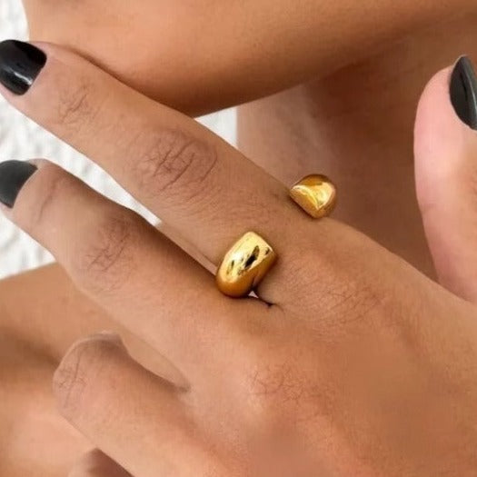 Anel vazado regulável folheado a ouro.