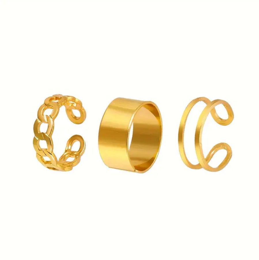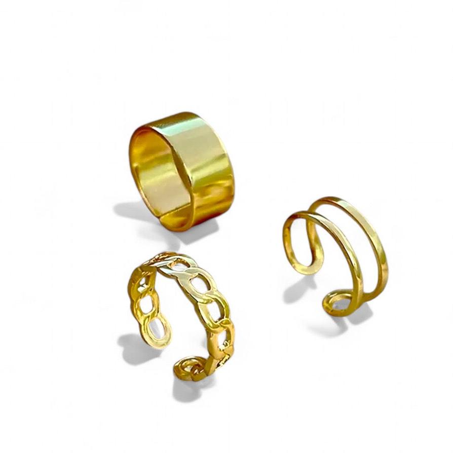 Kit com 3 anéis ajustável dourado folheado.