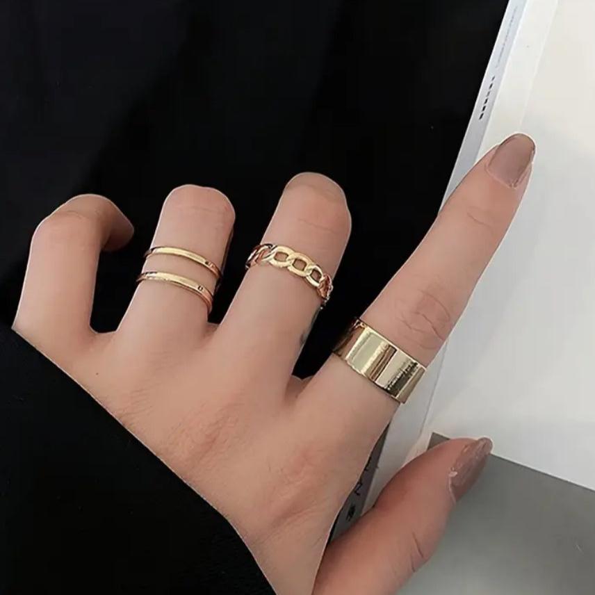 Anel Kit Com 3 Ajustável Folheado Dourado