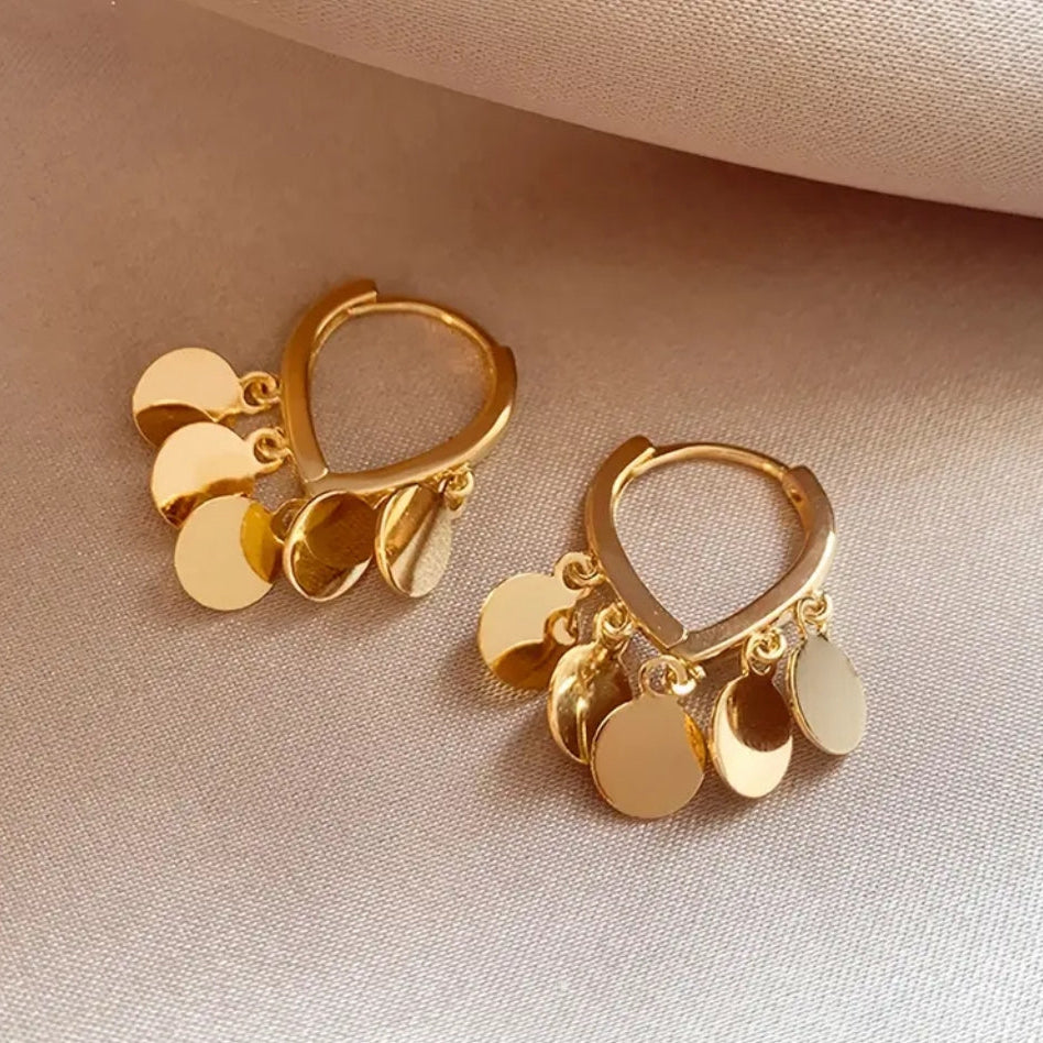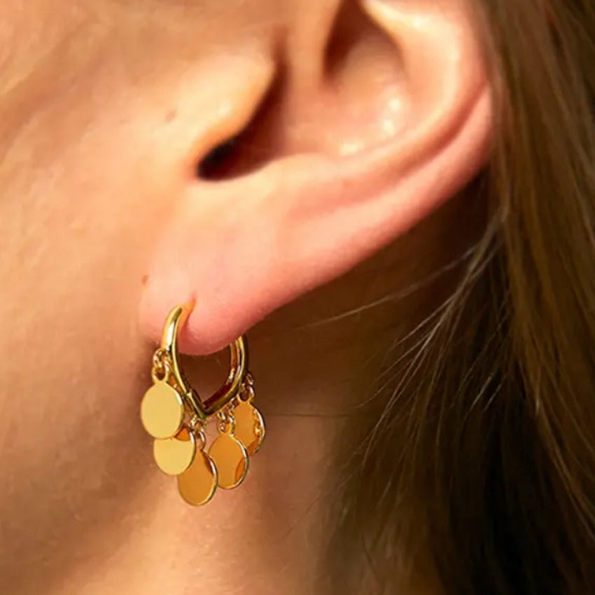 Argola pequena com plaquinhas dourada.