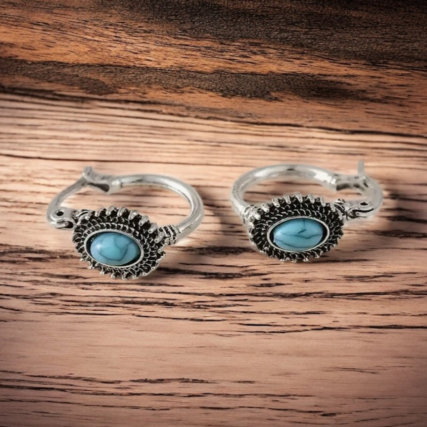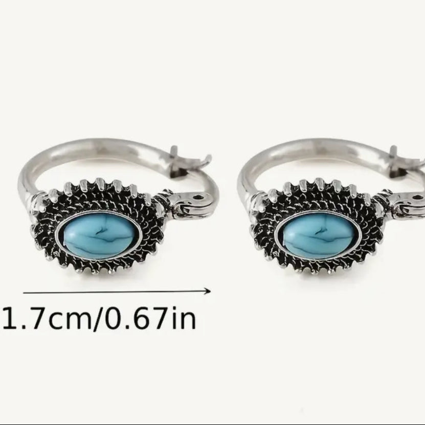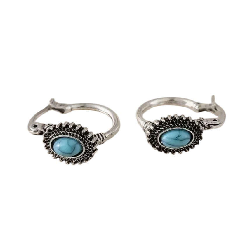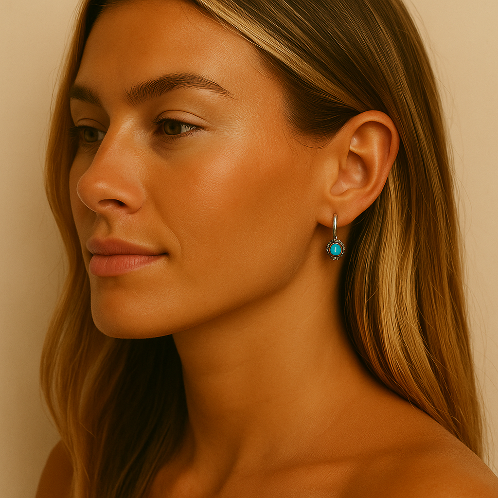 Brinco Argola com pedra turquesa Mini,