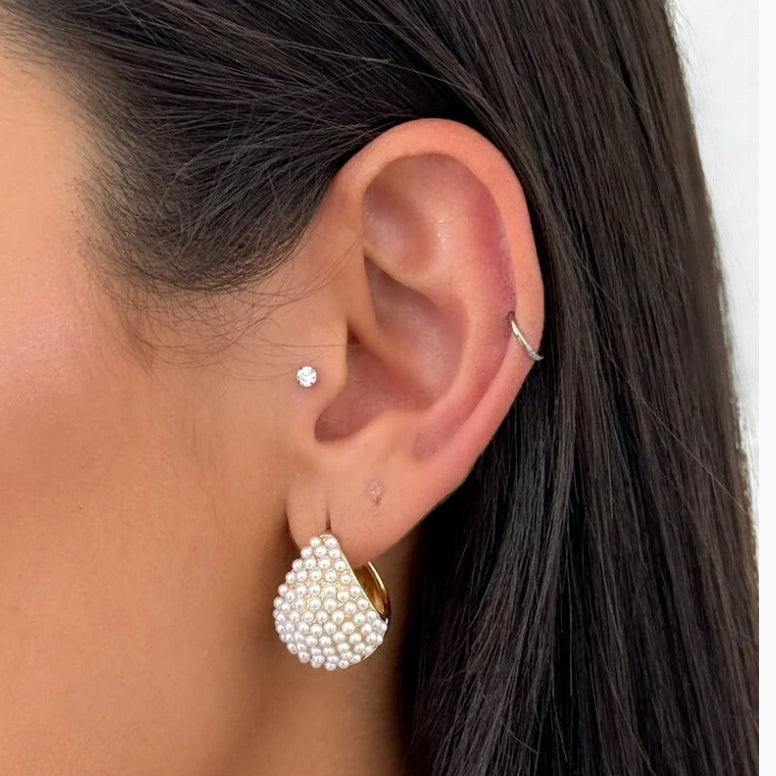 Brinco Argolinha em Pérolas Pequenas Folheado