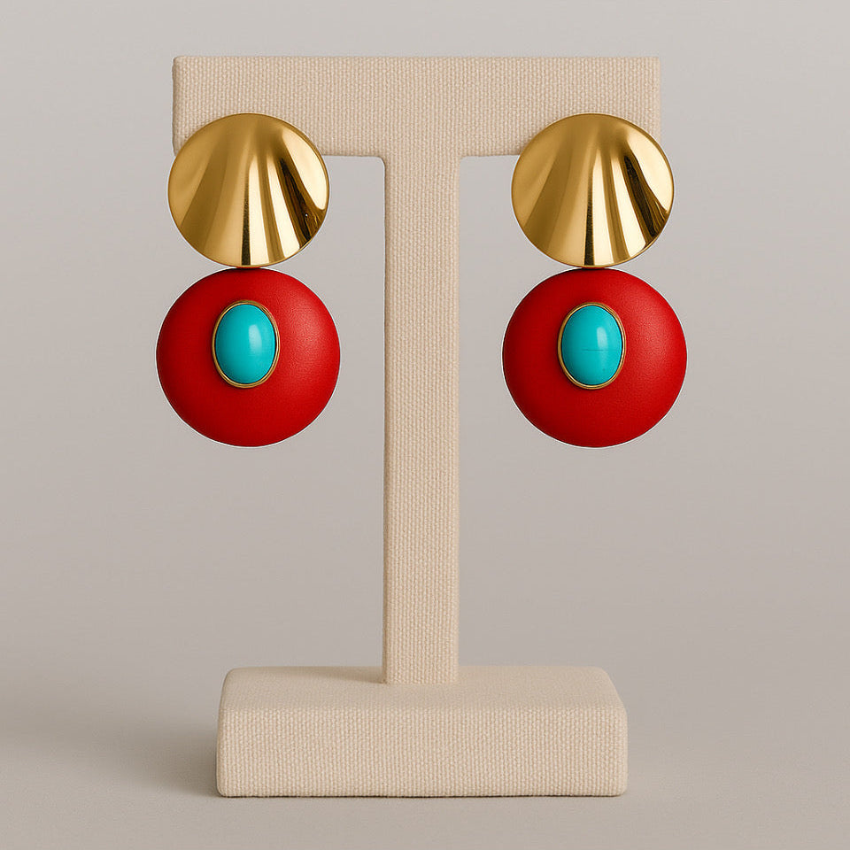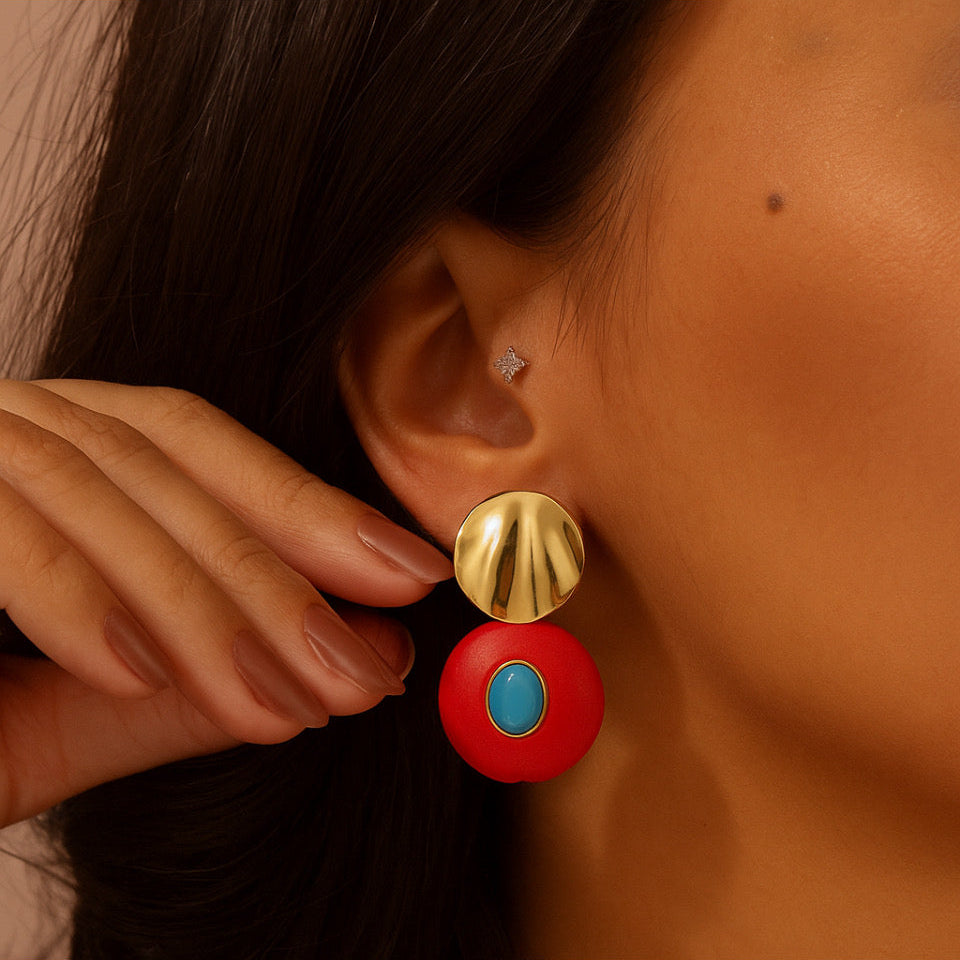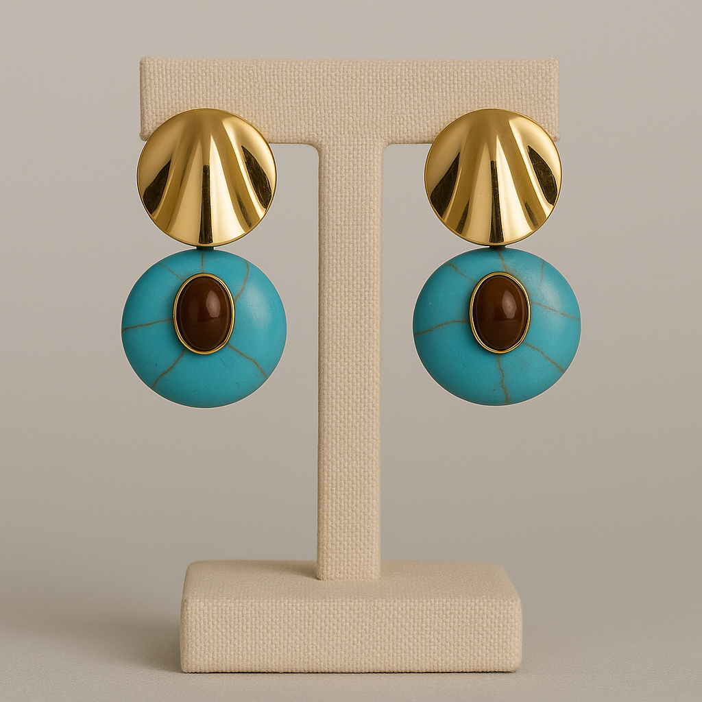 Brinco base dourada com pedra natural.