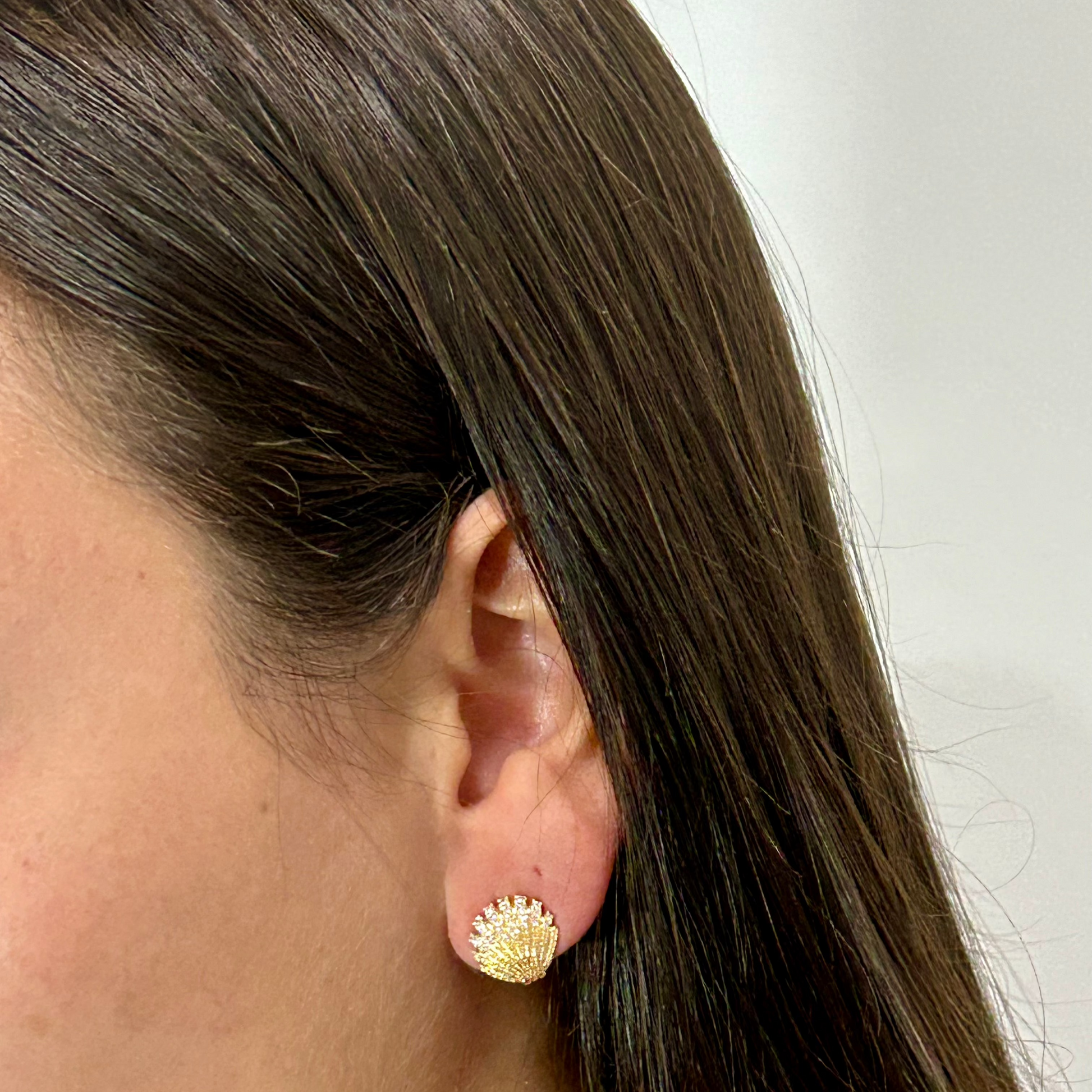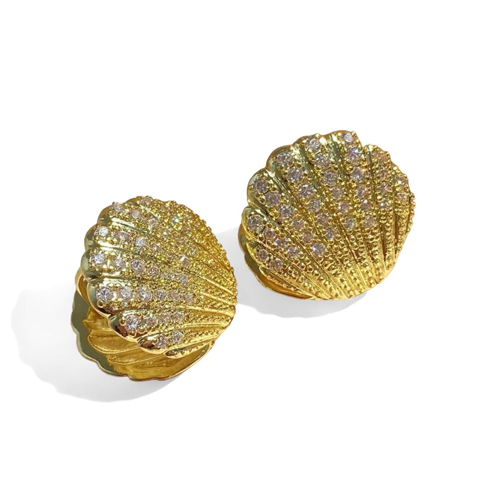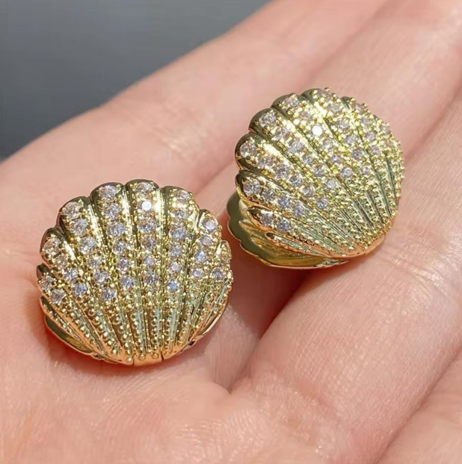Brinco concha dourado com micro zircônias.