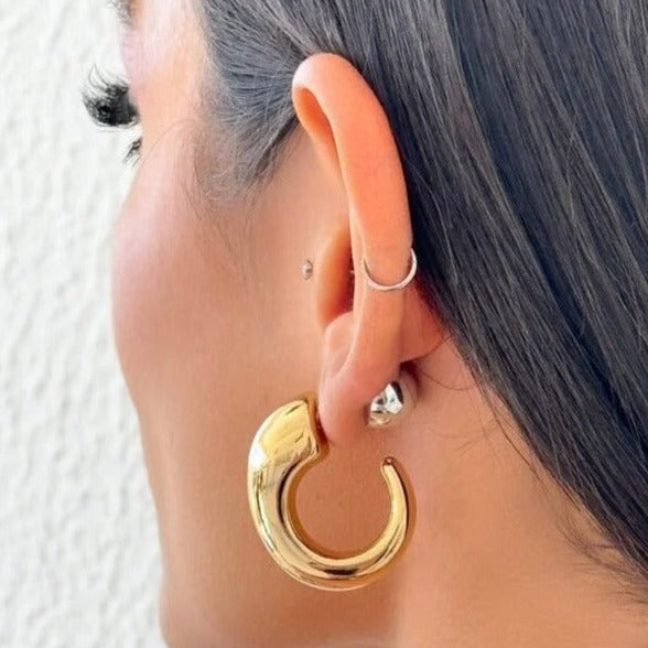 Brinco de argola oval com feicho de esfera, folheado à ouro