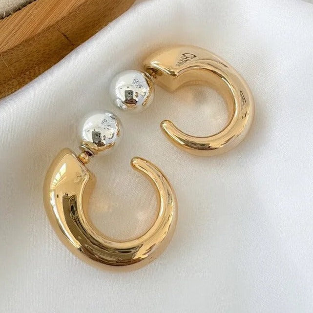 Brinco de Argola Oval com Fecho de Esfera Bicolor