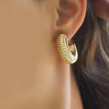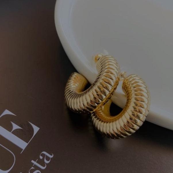 Brinco de Argola Tubular Riscado dourado Folheado