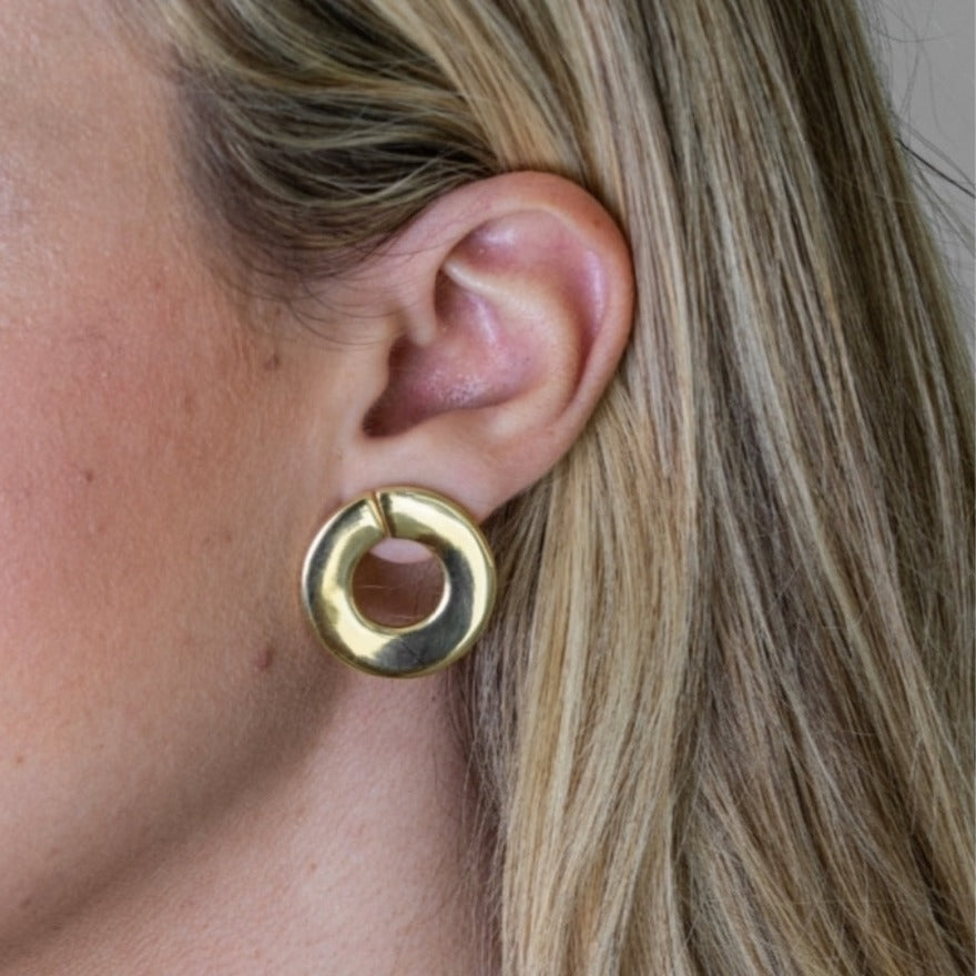 Brinco elo redondo cortado folheado a ouro ou a prata.