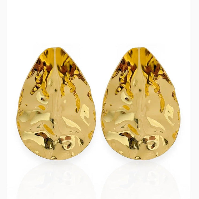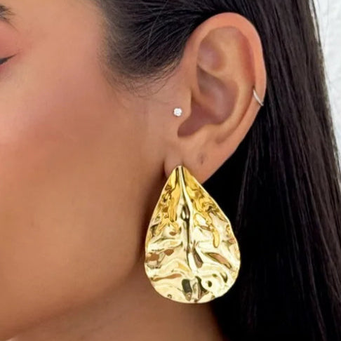 Brinco Em Forma De Folha Martelado Dourado.