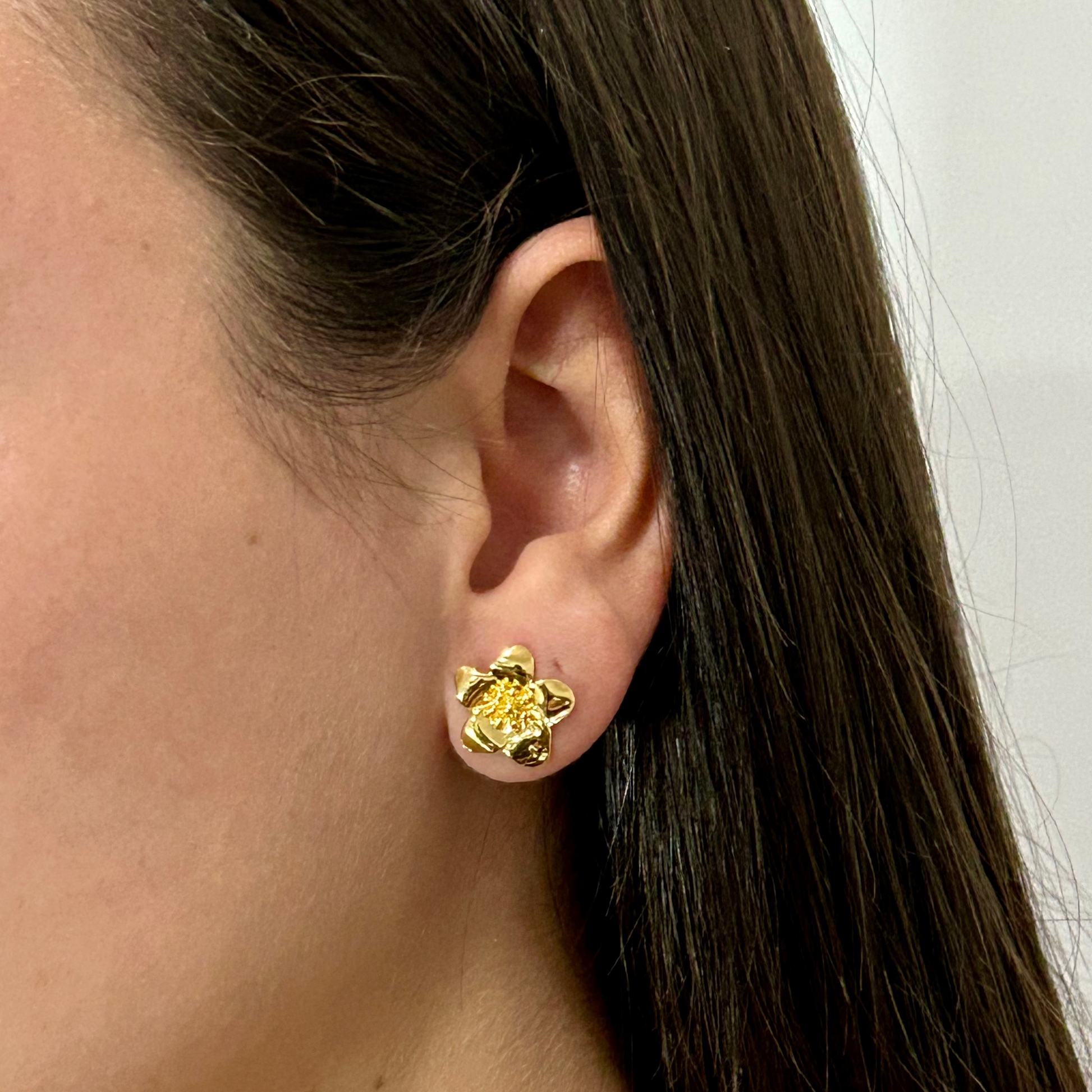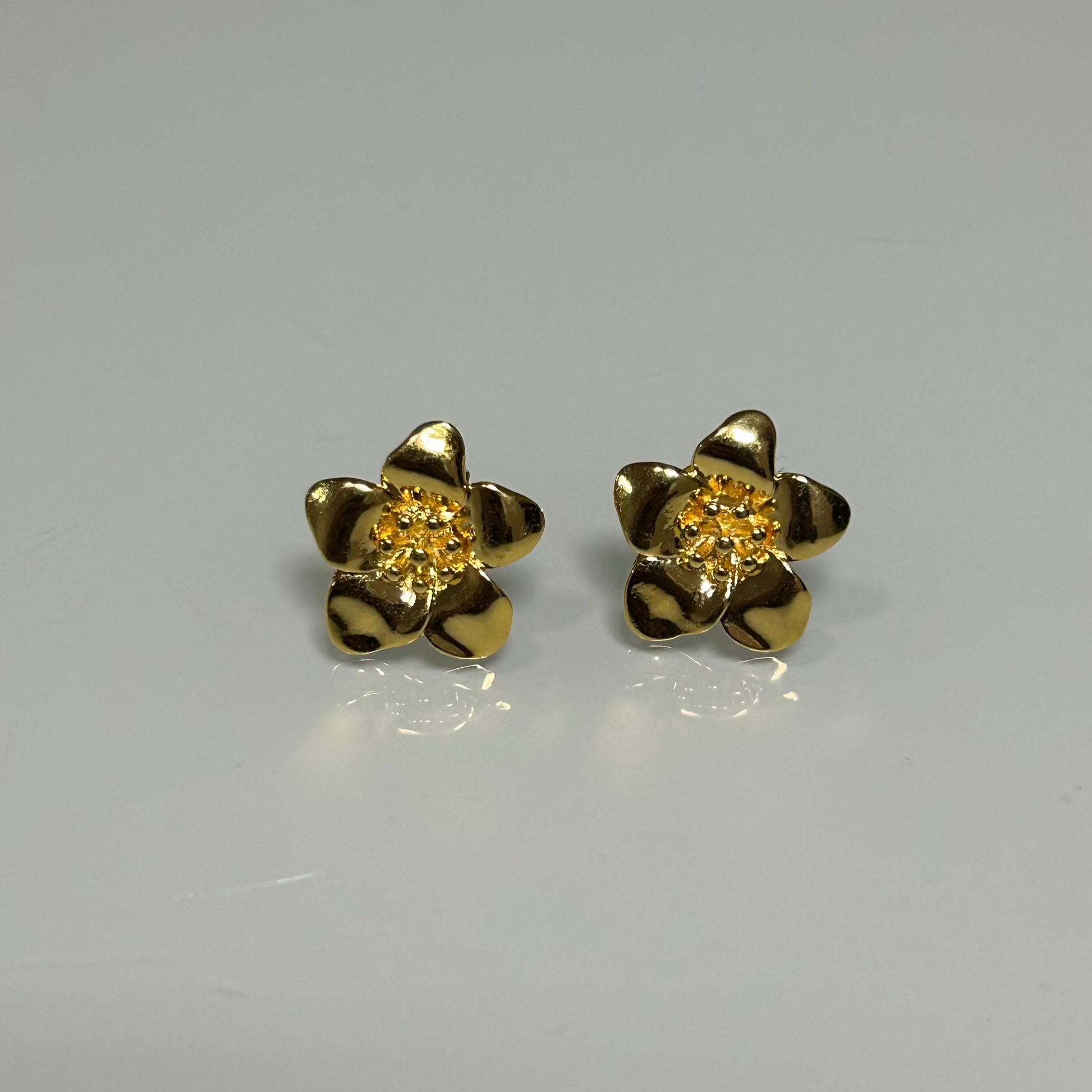Brinco flor margarida dourado pequeno folheado.