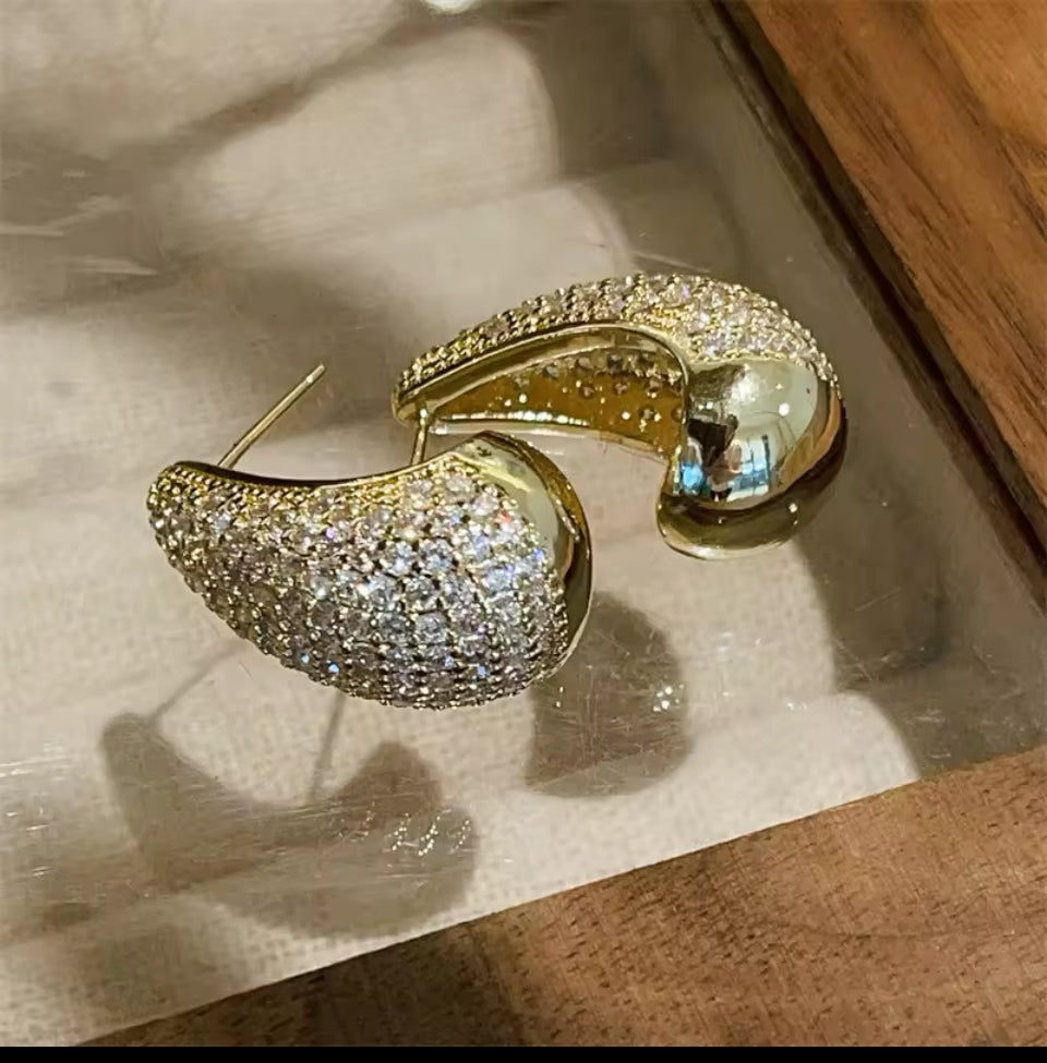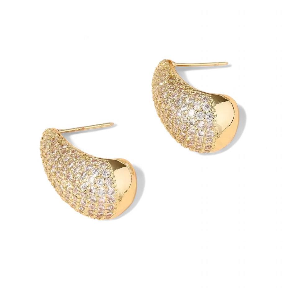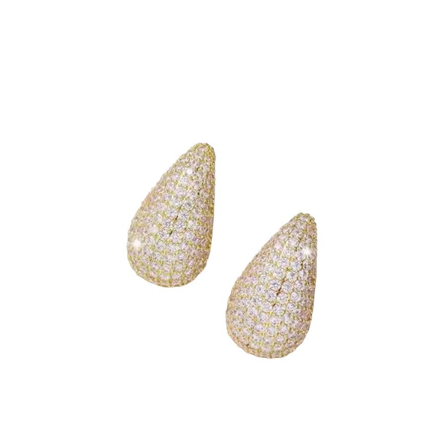 Brinco gota cravejado dourado folheado.