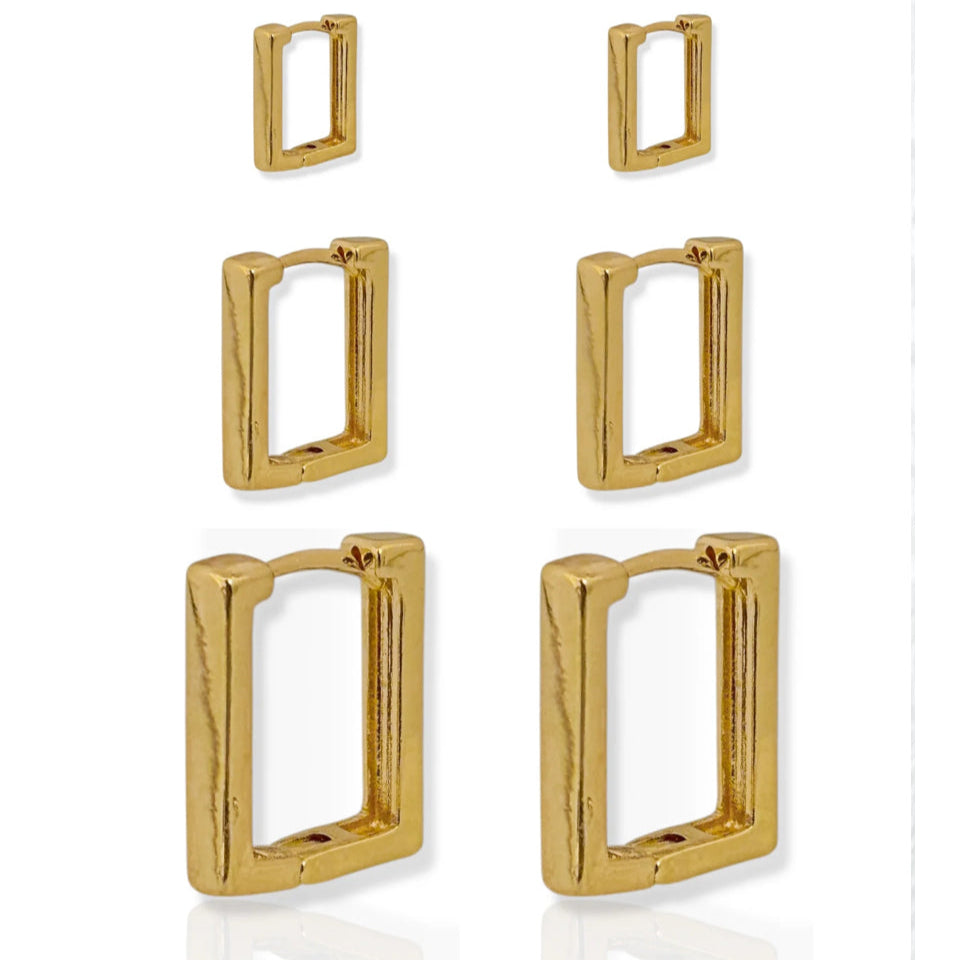 Kit argolas quadradas folheadas.