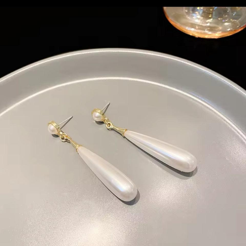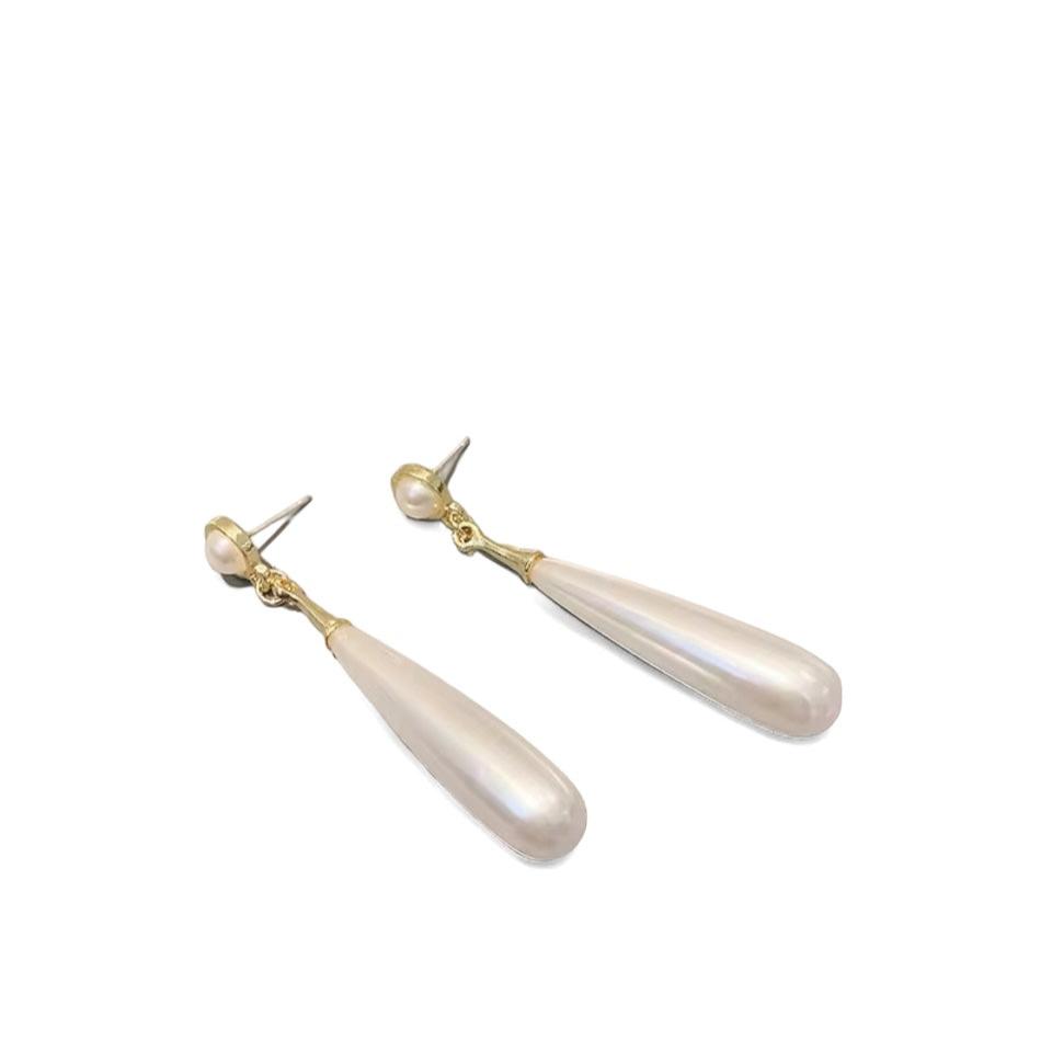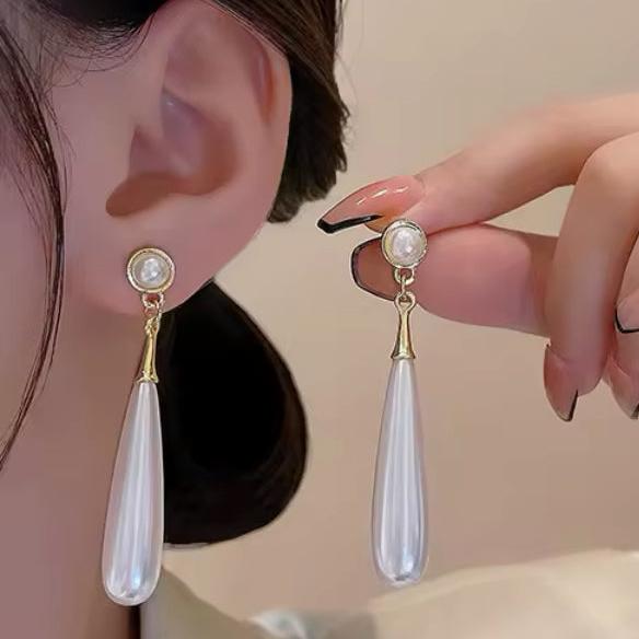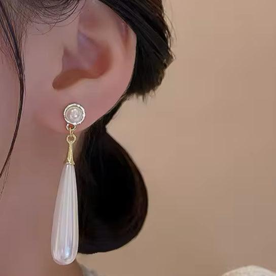 Brinco pérola longo.