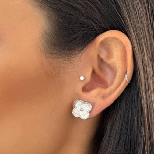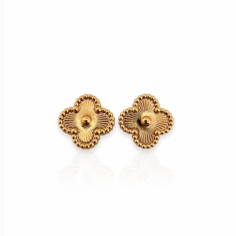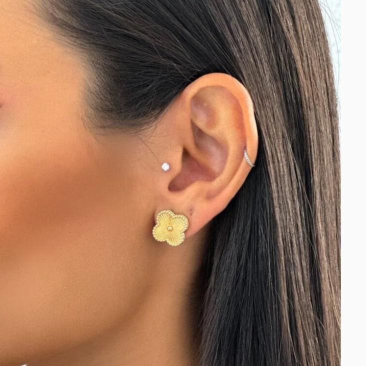 Brinco trevo trabalhado folheado folheado a ouro ou prata.