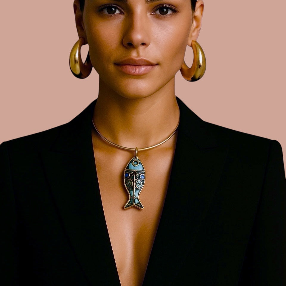 Colar Aro Fino cm Pingente Peixe Marroquino Pequeno