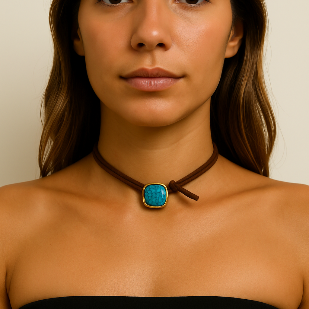 Chocker fio camurça com pedra turquesa .