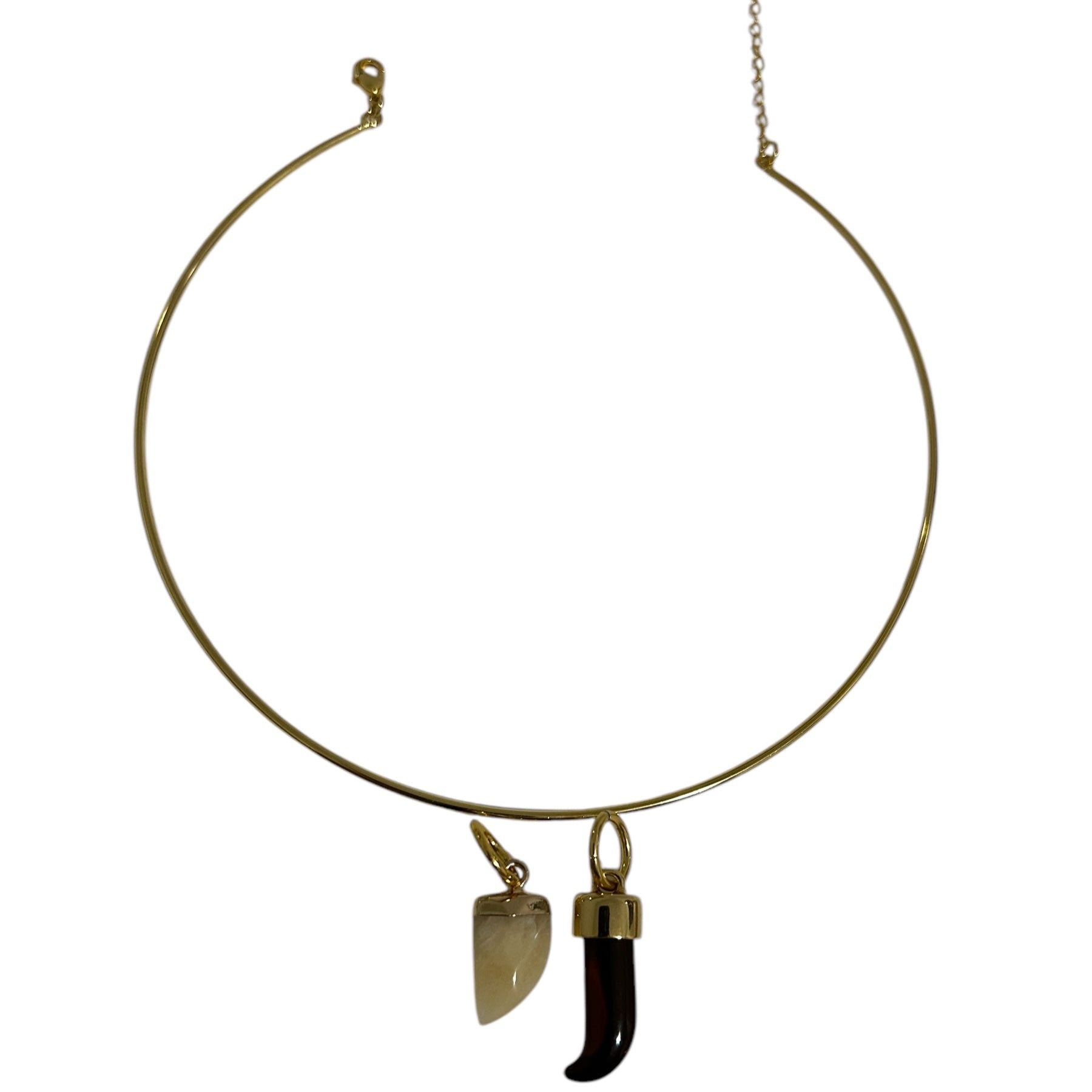 Colar Chocker Aro Fino com 2 Pingente Dente Dourado