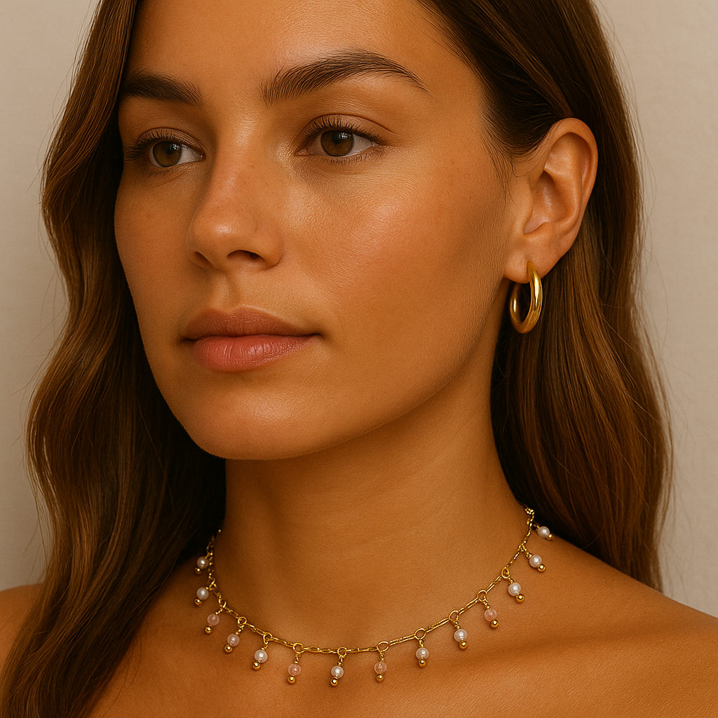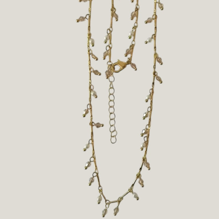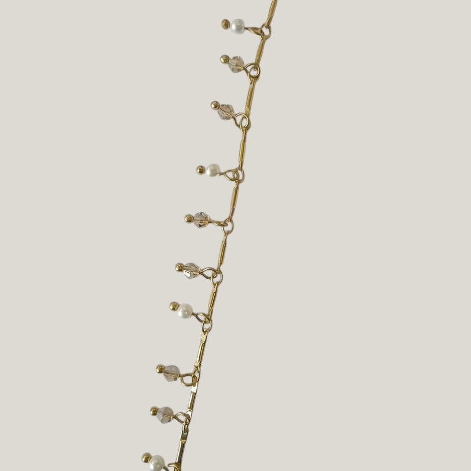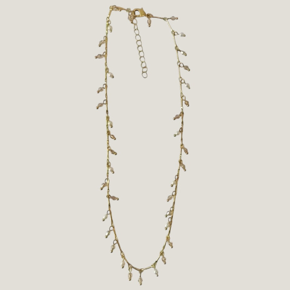 Colar Chockr Pérolas e pedras Penduradas Minimalistta