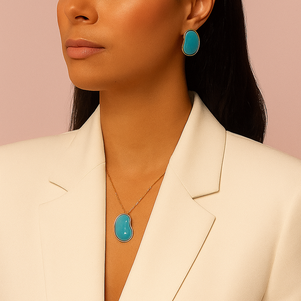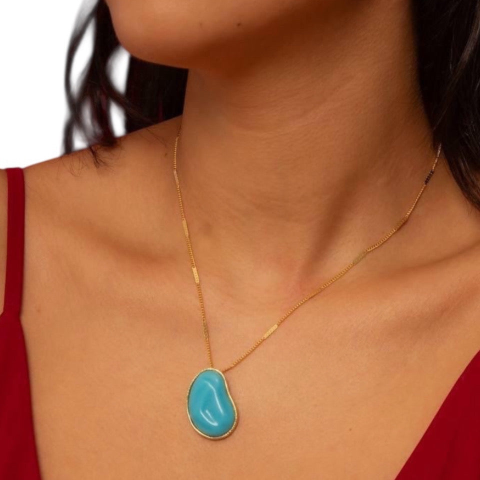 Colar Corrente com Pingente Orgânico turquesa Resina