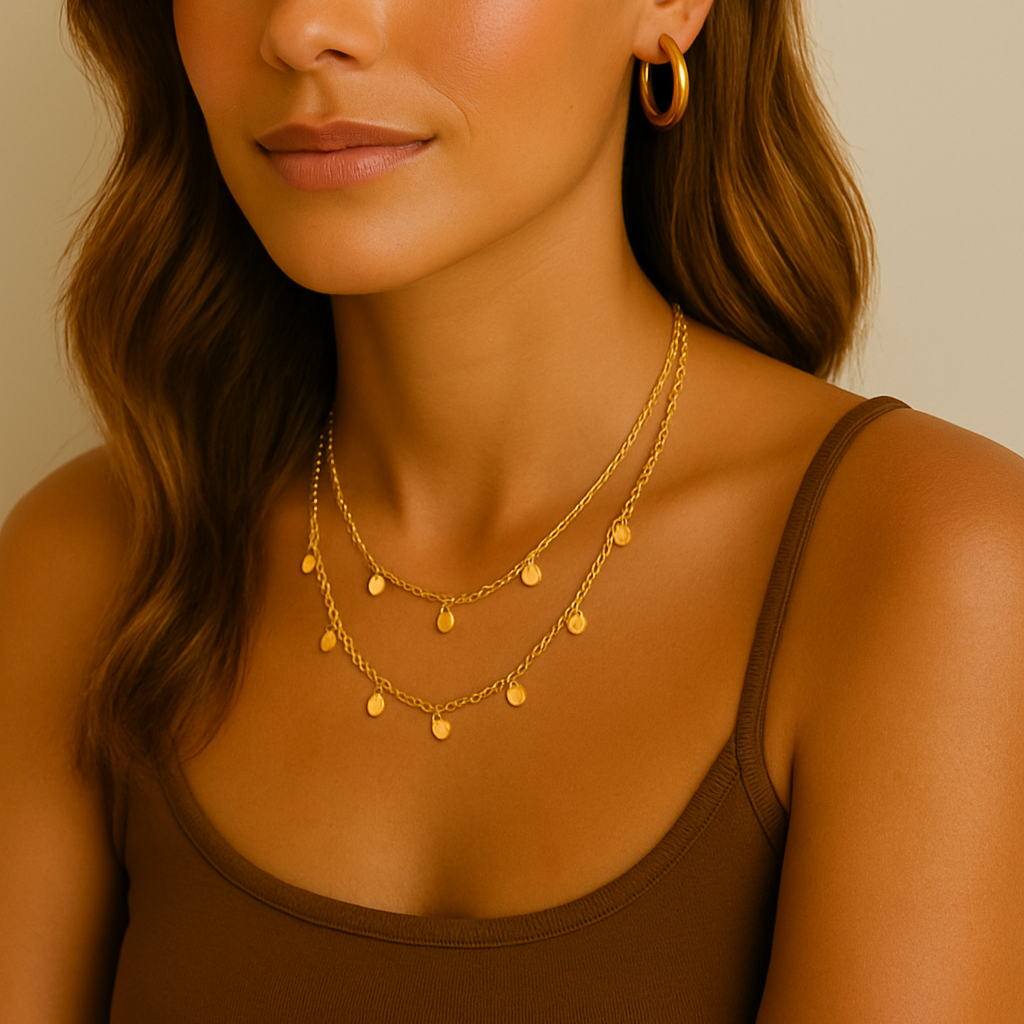 Colar Corrente com Plaquinhas Pendurada Comprido