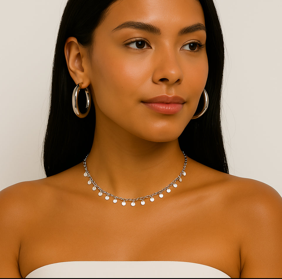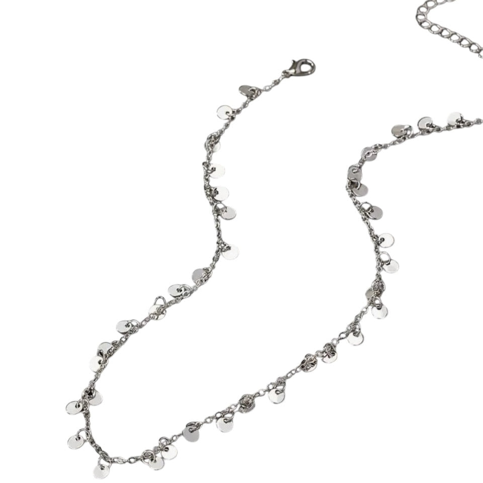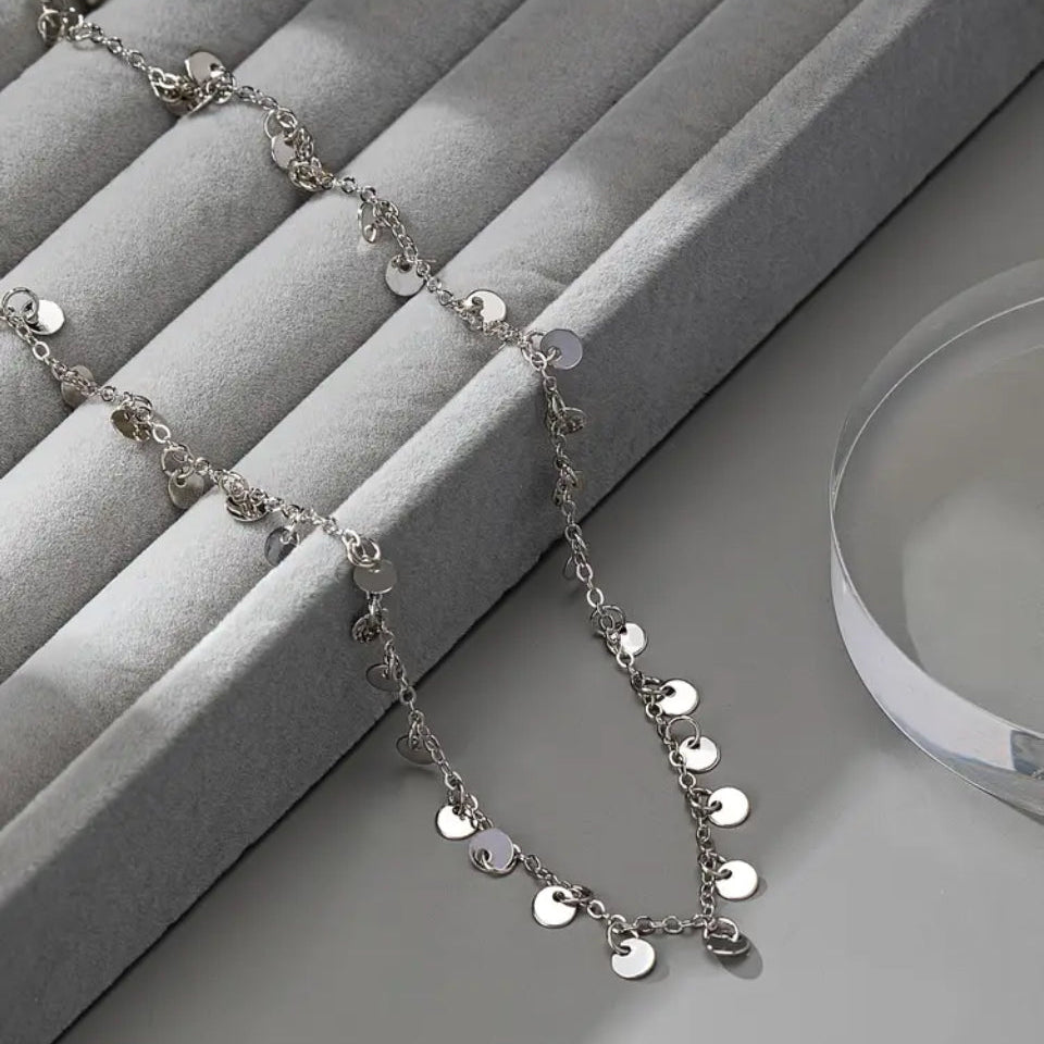 Colar plaquinhas prateado.