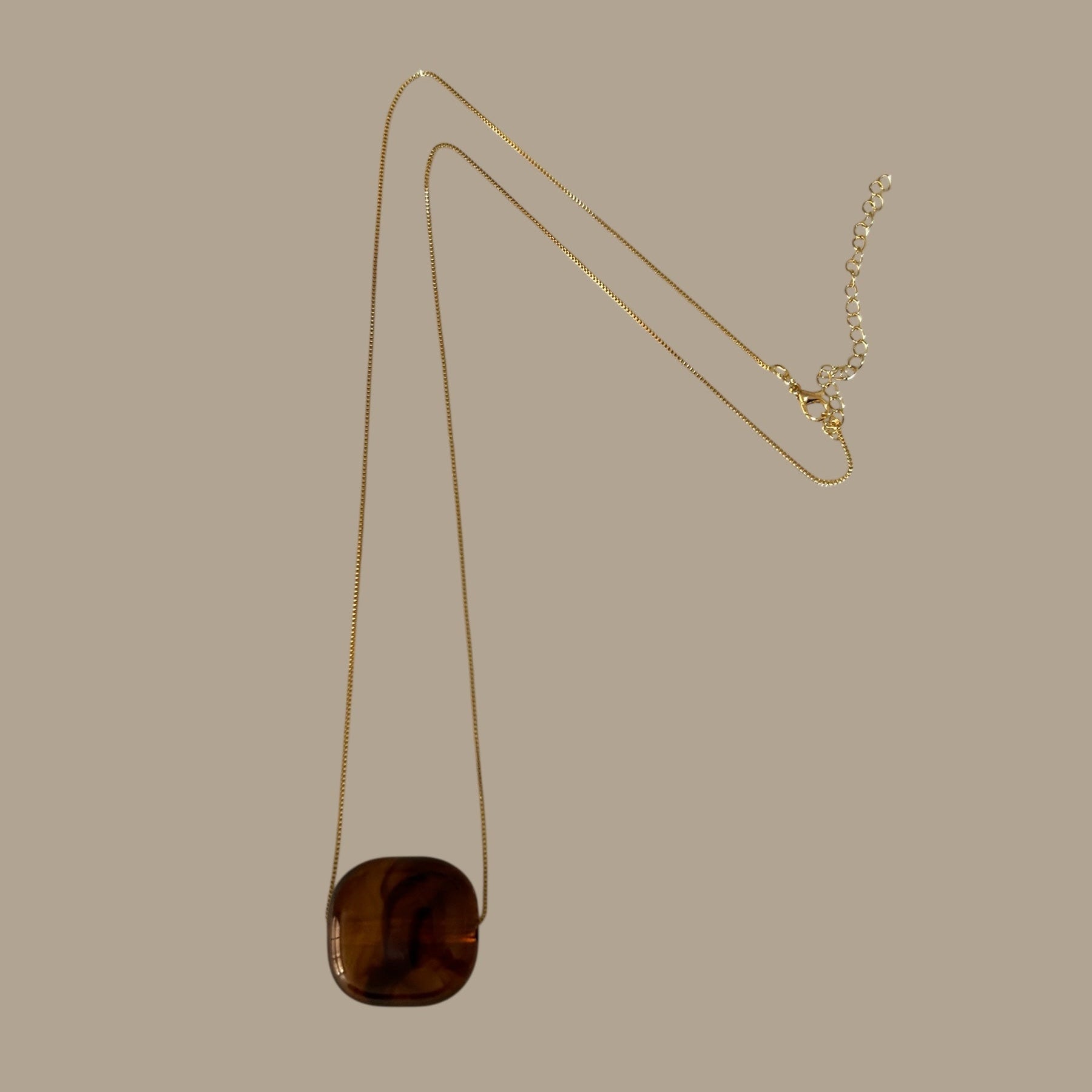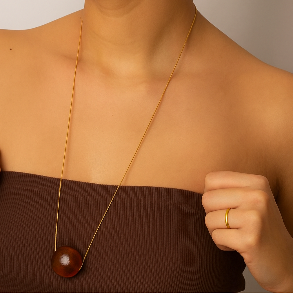 Colar Corrente Longo com PIngente Esfera Resina Marrom