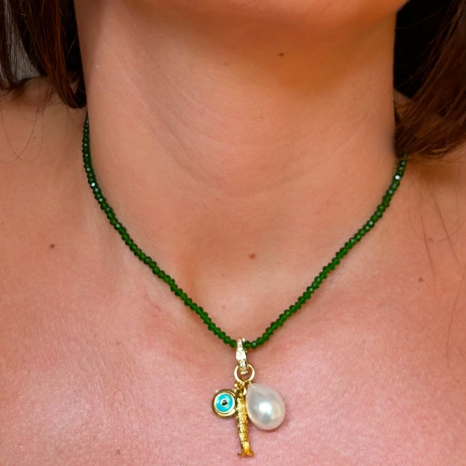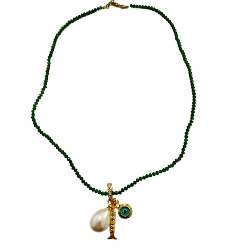 Colar miçanga com pingente.