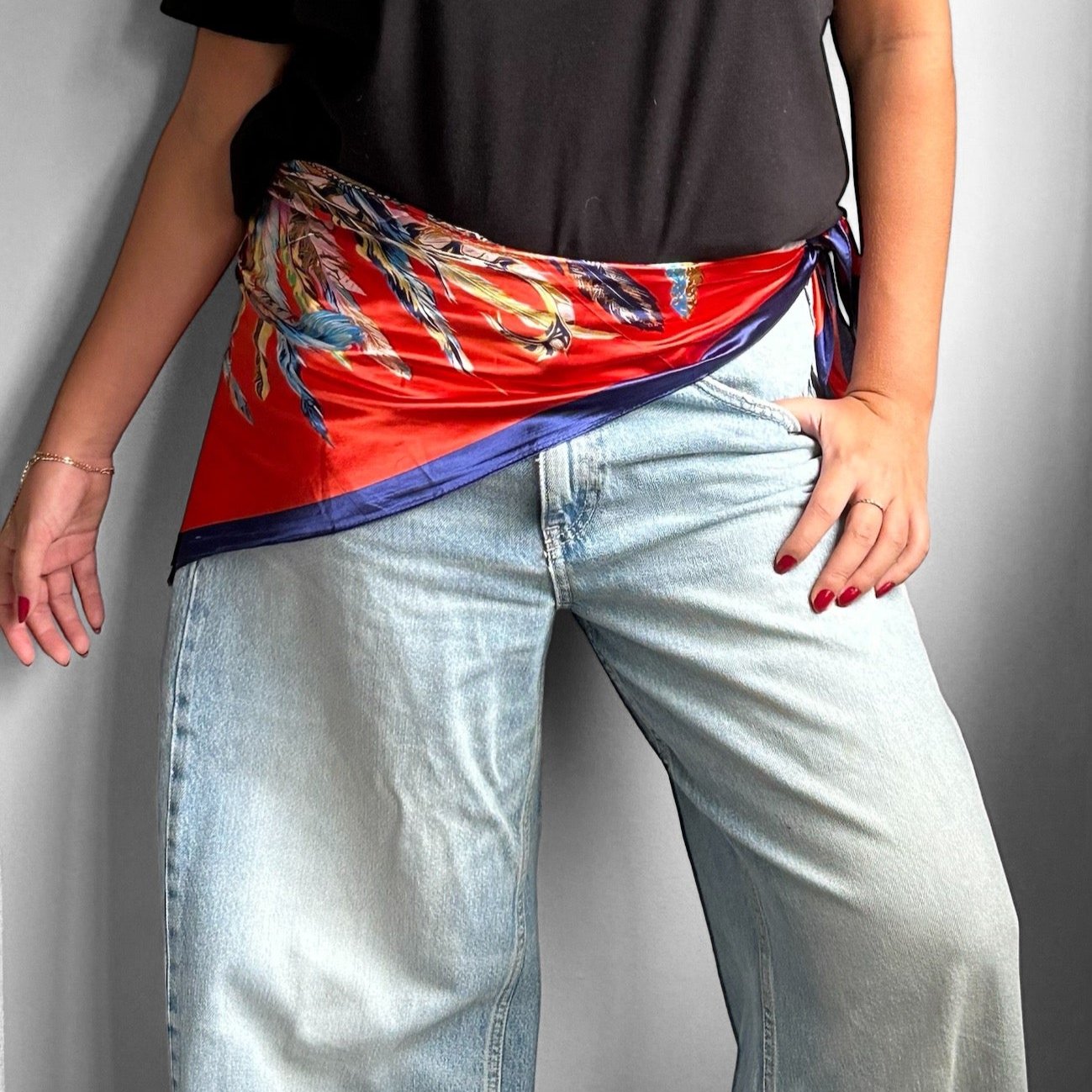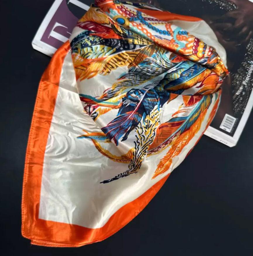 Lenço de cetim estampa pena 90x90