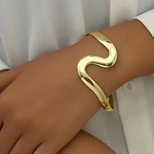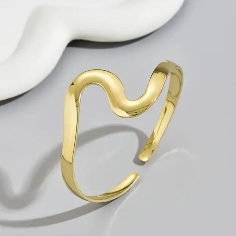 Pulseira Bracelete Aberto Fino Onda Folheado