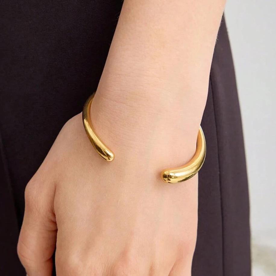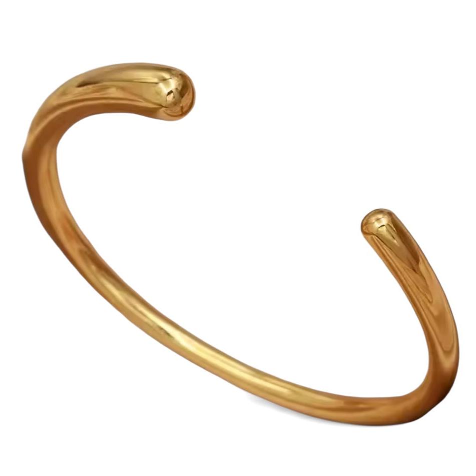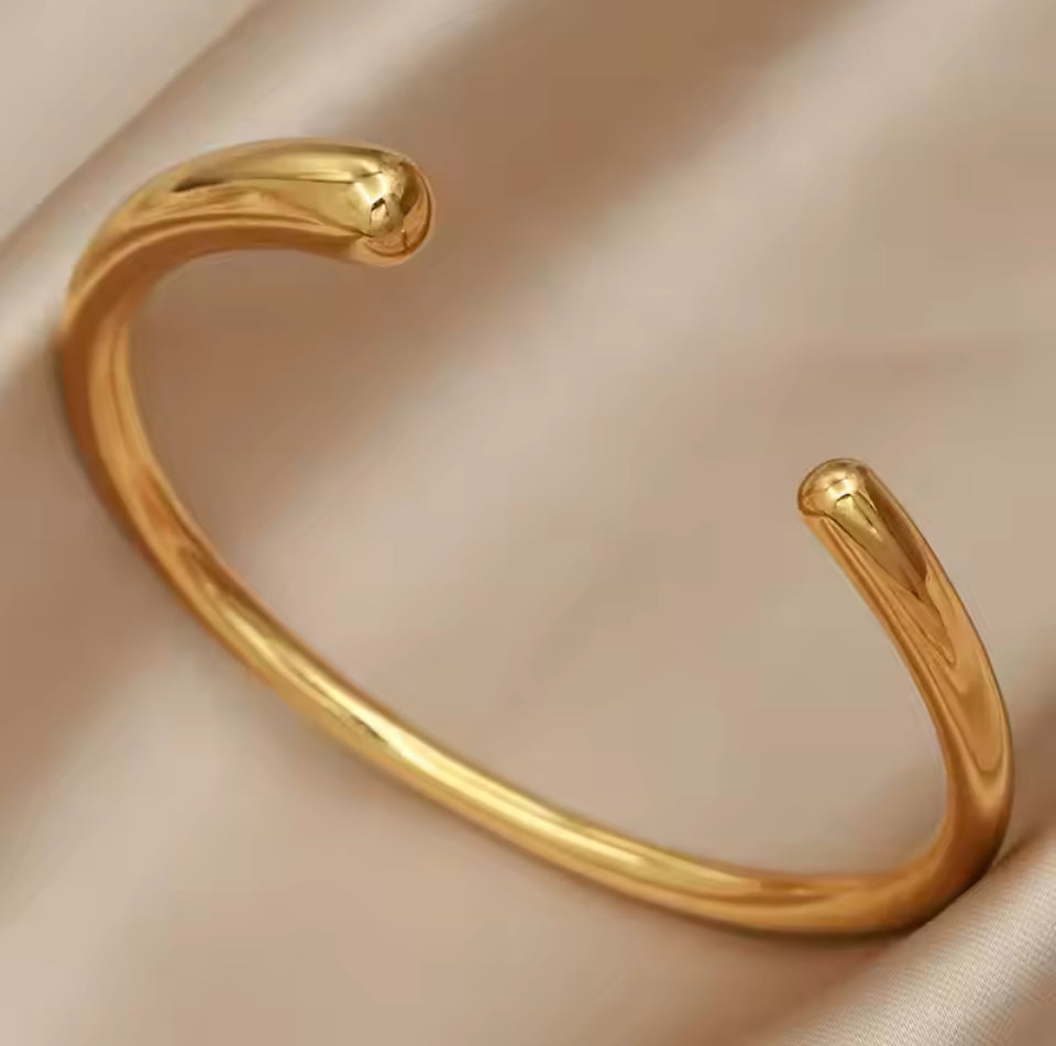 Bracelete aberto gota nas pontas dourado folheado.