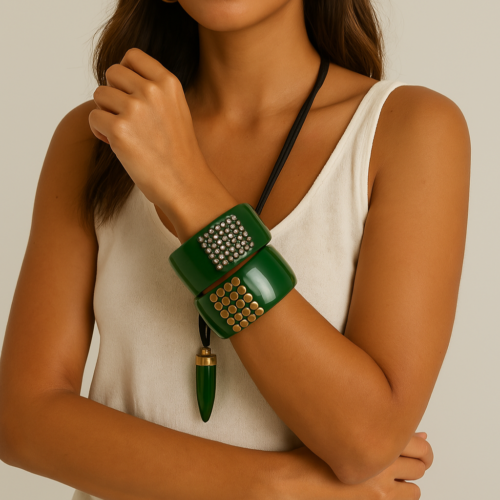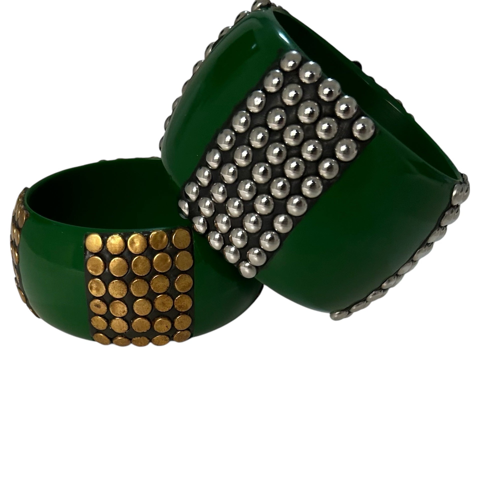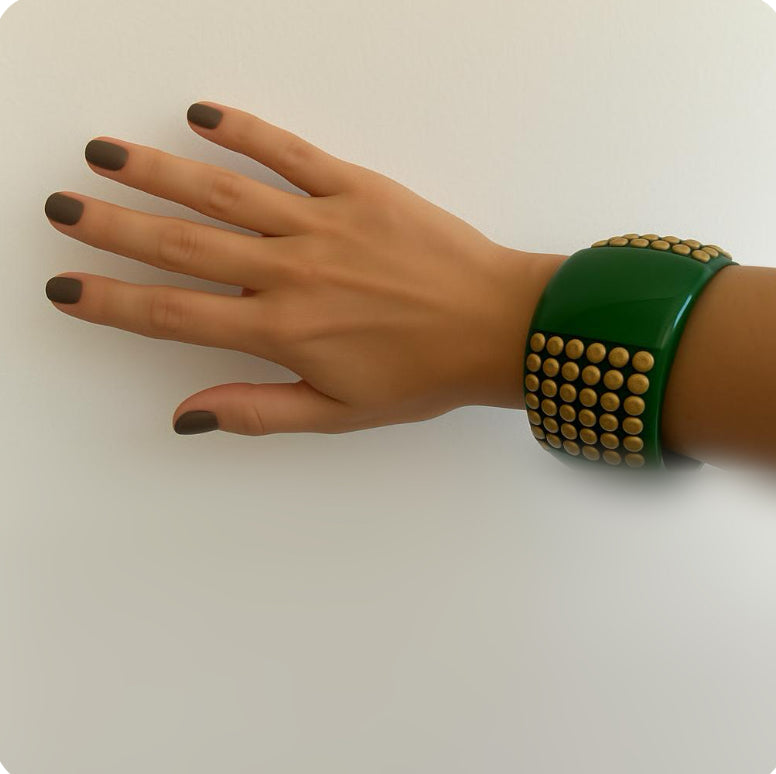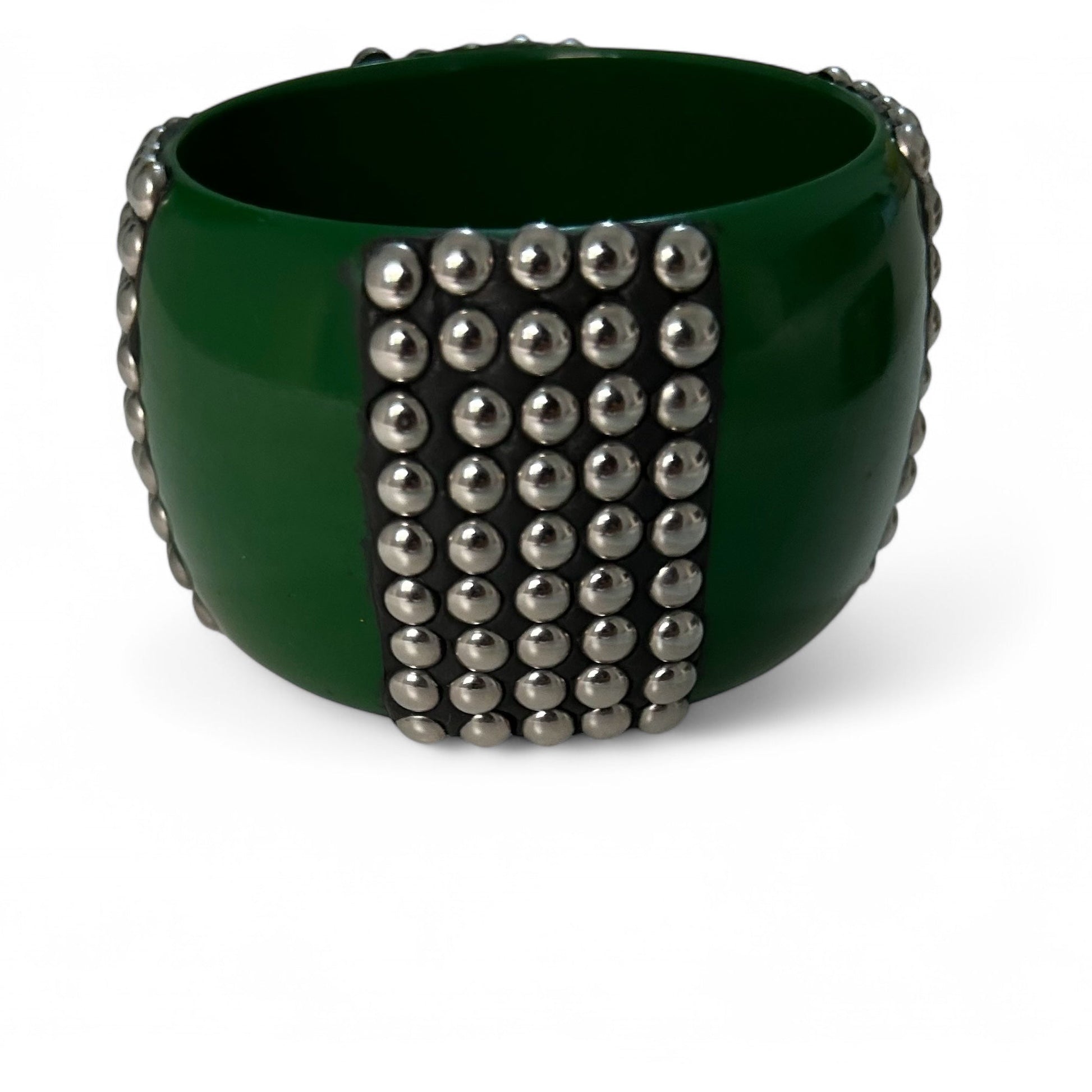 Pulseira Bracelete Indiano Resina verde com Tachinhas